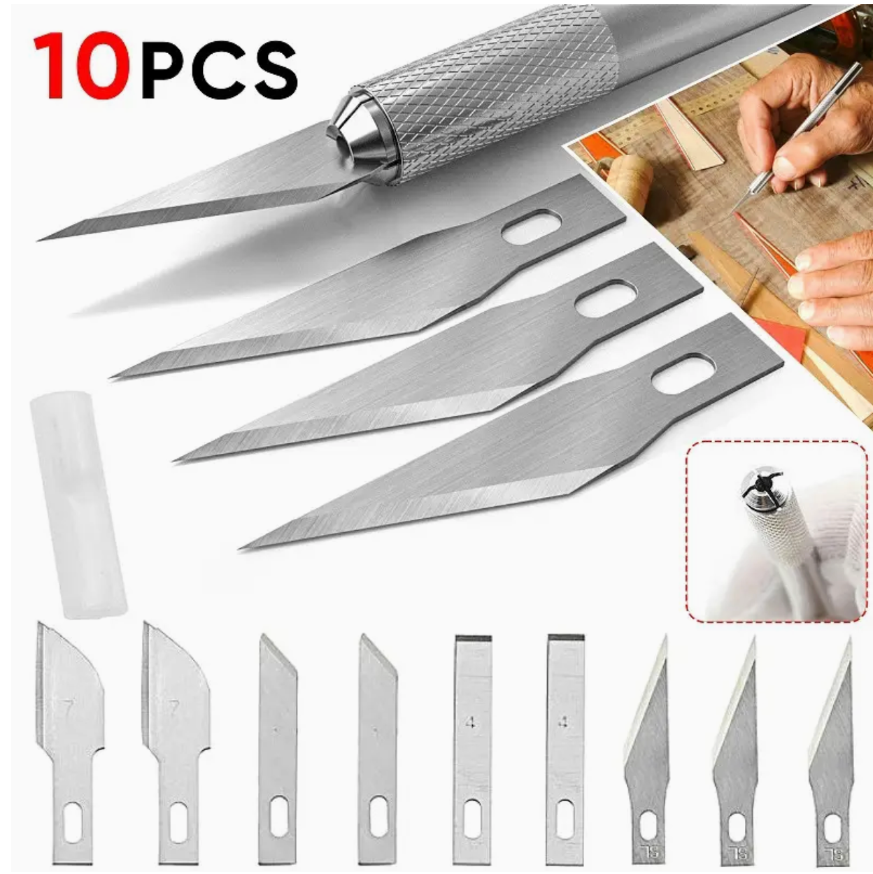 Levereras med 10 extra blad så att du alltid har en vass egg redo att användas. Detta gör metallskalpellen perfekt för både hobbyprojekt och professionellt arbete.