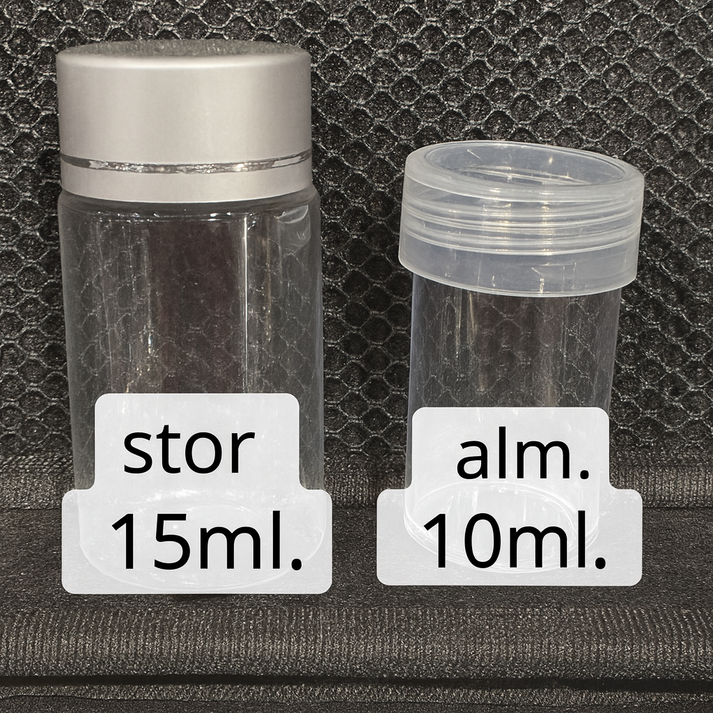 Kuffert med 60 runde bøtter med metallåg 15ml