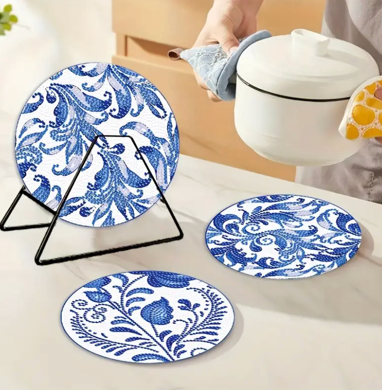 Diamond painting bordskånere – Blå porcelænsinspireret design